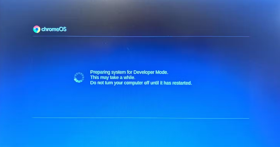 您的 Chromebook 将重新启动,您需要再次按 Ctrl+D。设备将被擦除并启用开发者模式。