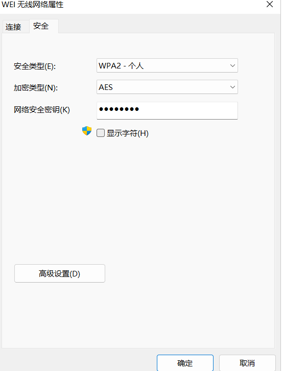 单击“无线属性”,然后在弹出的“无线属性”窗口中勾选“显示字符”框以显示您的密码。