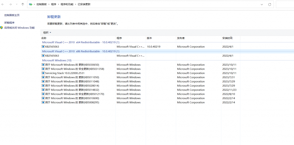 第三、打开“卸载更新” ” ,可以查看历史记录,把更新后出现问题的选择中,卸载 就可以恢复到更新之前状态了