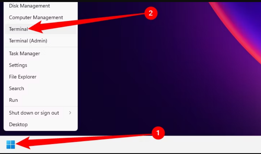 要使用 robocopy 命令,您需要打开Windows 命令提示符或Powershell。您可以通过右键单击开始菜单并选择 Windows 终端或 Powershell 选项来执行此操作。