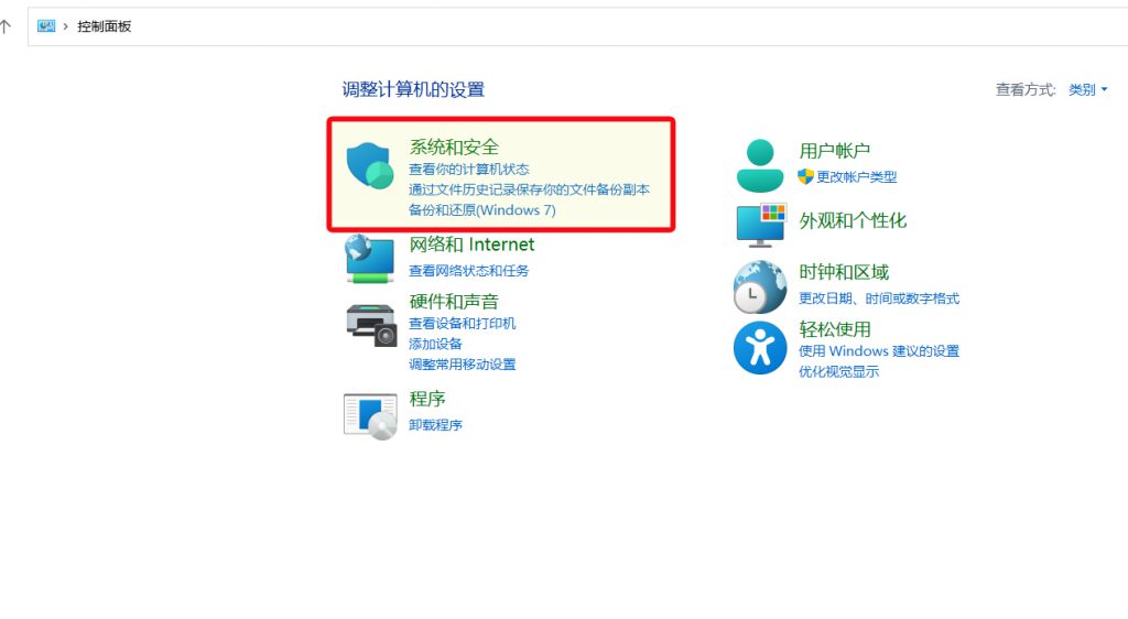 在控制面板中,选择“系统和安全”。