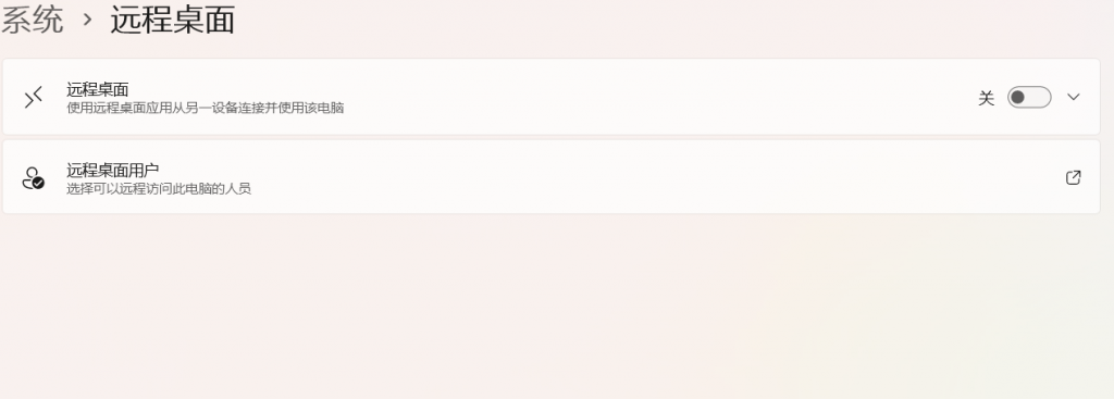 在以下屏幕上,关闭“远程桌面”切换按钮。