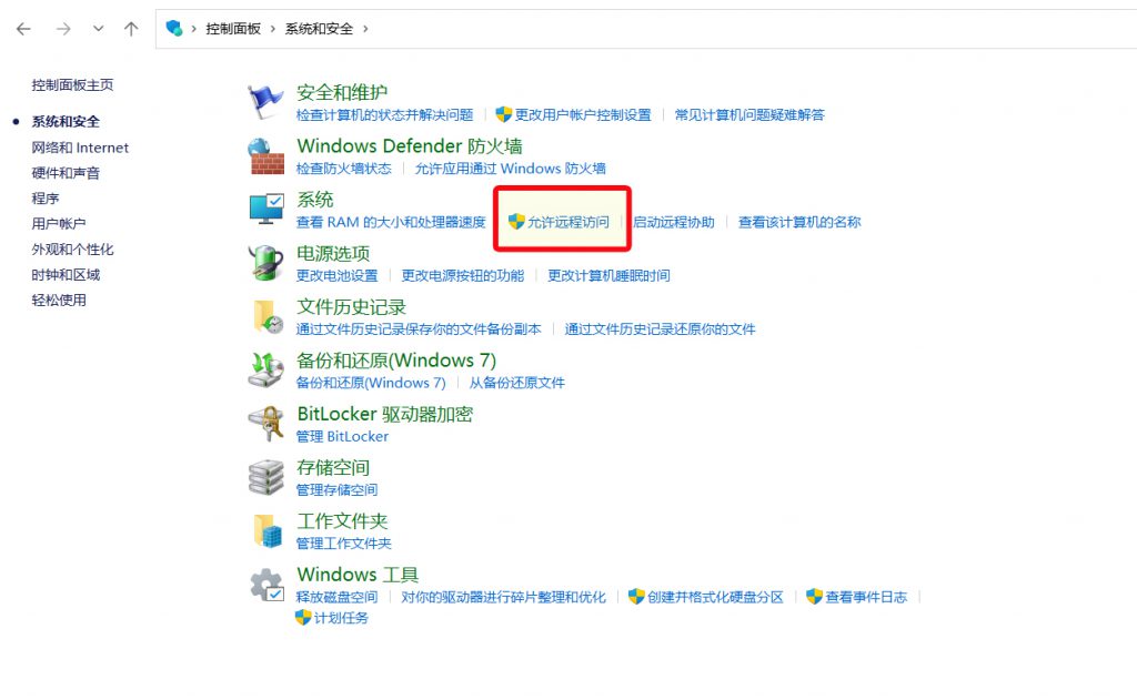 在系统部分中,选择“允许远程访问”。